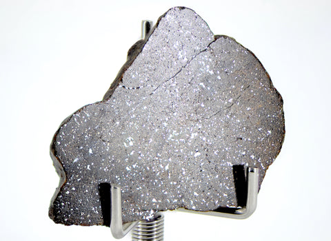 Description: 9.65g end slice of amazing Acapulcoite meteorite NWA 17906. This acapulcoite is a beautiful example of these rare metal-rich primitive achondrite. This is a new acapulcoite that has just been classified by Dustin Dickens from the Laboratory for Meteorite Analysis and Classification (LMAC) at the University of Colorado Boulder's EPMA laboratory.