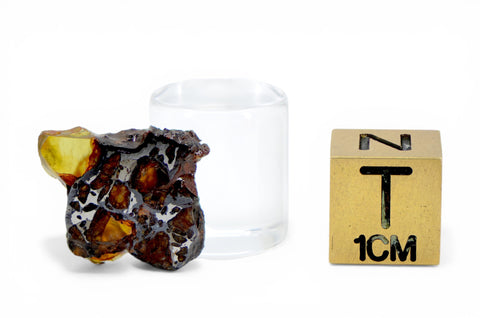 What you get: 1.56 gram Golden Pallasite partial slice as shown, signed Certificate of Authenticity, and shipping/storage membrane box.
