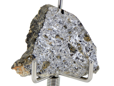 Description: 2.9 gram slice of HED howardite with a mix of approximately 65% eucritic material and 35% diogenitic material. Fusion crust can be seen on the outer part of the slice in two of the three sides of the slice.