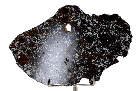 What you get: 47.5 gram NWA 14518 Mesosiderite stoney-iron meteorite slice as shown, storage/shipping membrane box, and Certificate of Authenticity.
