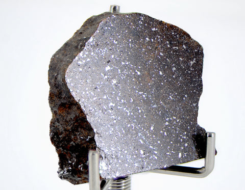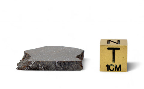 Description: 5.48g end slice of amazing Acapulcoite meteorite NWA 17906. This acapulcoite is a beautiful example of these rare metal-rich primitive achondrite. This is a new acapulcoite that has just been classified by Dustin Dickens from the Laboratory for Meteorite Analysis and Classification (LMAC) at the University of Colorado Boulder's EPMA laboratory.