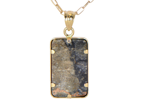 What you get: 14K Gold Pendant with genuine lunar meteorite center stone, as shown, and double sided color 5"x7" Certificate of Authenticity signed by the Curator of Collections.