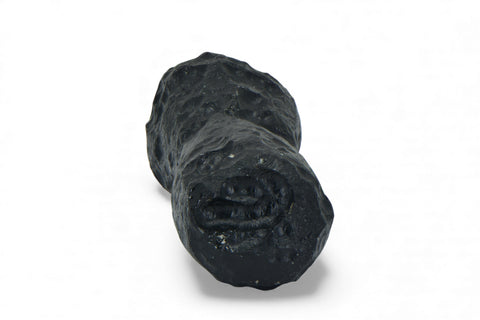 This tektites was ejected from the Earth's surface by a massive meteorite impact that created a mushroom cloud so huge that likely extended into the upper atmosphere. The 'stem' of the mushroom cloud formed a massive superheated convection column that both baked the ejecta (tektites) and sent it into ballistic trajectories that allowed for distribution of material as far away as 11,000 Km. These vitreous astronauts are thought to be the least aqueous material on the planet, having had every bit of volatiles (water) baked out of it in the act of its creation. After being pressure melted by the massive impact, it was then super heated after being shot up the convection column before being ejected into freezing space at sub-orbital heights. Then it further tempered during reentry, before it lost it's ejection velocity and fell to the ground at terminal velocity to form the distinctive glass-like structures we find throughout areas of Southeast Asia today. Indochinites appear to be black but they are really a very dark green, this in contrast to the vivid forest and olive greens of the European Moldavite tektites.