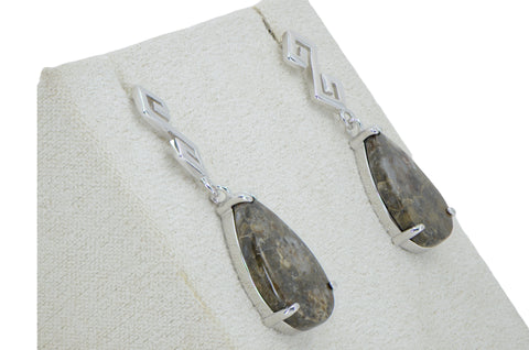 Description: The Moon Drop earrings are a unique handcrafted set of Lunar Meteorite earrings with center stones hand fashioned from a piece of the Moon. Made from the beautiful lunar meteorite NWA 15368 and set in Sterling Silver.