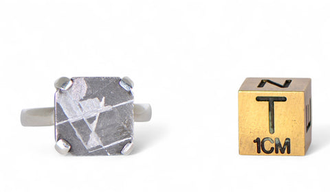 This ring shows the characteristic Widmanstatten pattern which is indicative of a cooling process that takes millions of years. This very slow cooling and crystallization of two different iron-nickel alloys within the cores of larger asteroids is the only place in the universe these patterns are known to form. These unique Widmanstätten patterns are only found in iron meteorites and the planetary and asteroidal cores where they are formed.