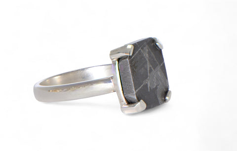 On Offer: Etched Muonionalusta Iron Meteorite set in Sterling Silver Ring.