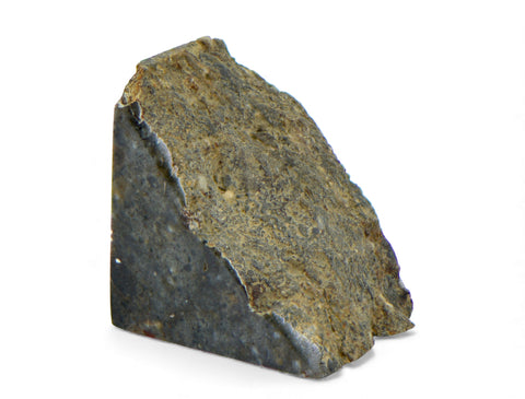 On Offer: 9.13 gram triangular prism shaped piece of a lunar meteorite, of the type feldspathic breccia. All sides but one have been polished to allow for an exceptional interior view of the clasts and matrix. The side that was not polished was left as it was found, with only minor cleaning.