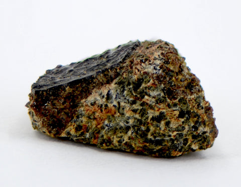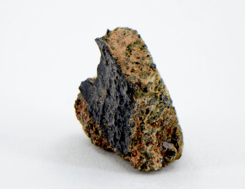 Description: A 0.624 gram crusted fragment of a beautiful and rare Martian meteorite. This is a stunning 0.624 gram specimen of a cumulate achondrite from Mars, with beautiful black crust on one side. This type of martian meteorite is known as a "Nakhlite" and was given the official name of NWA 10645. This was one of my earliest classifications.